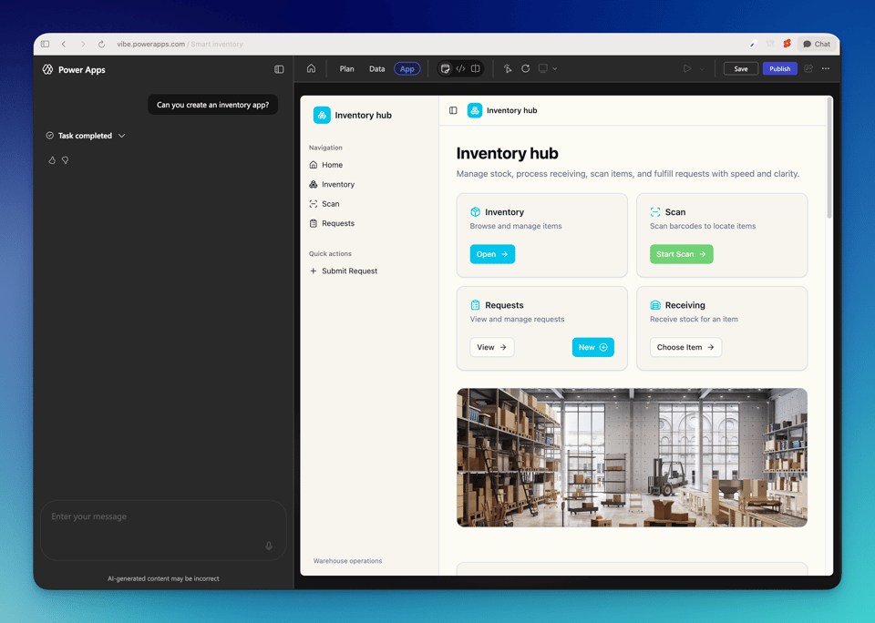 "Vibe coding" leads me to the next big update: Microsoft launched a new app building experience where you describe what you want in plain language and AI agents generate your data model, user stories, and a full React app on Dataverse. Still in preview, US region only, and English only. But I actually was able to test it and it's a pretty interesting experience. Don't ship production apps with this yet.