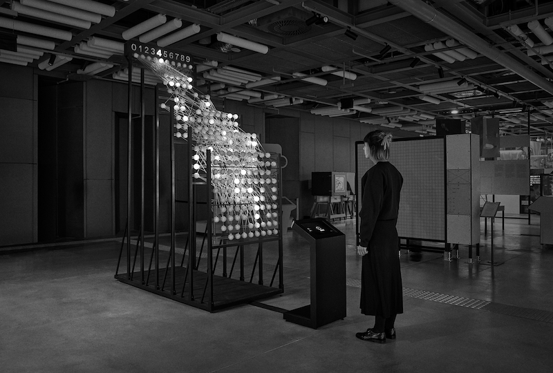 Interactive light sculpture by PanGenerator representing a real, functioning deep neural network. Trained to do simple hand written digit classification, this installation is made of 195 custom 3D printed neurons. As people draw a digit on the touch screen, the neurons light up in each layer to represent the behavior of the network during the inference.