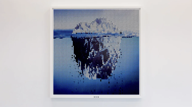 Interactive kinetic installation by Breakfast Studio showing the current state of the melting ice sheets in Antarctica, driven by data from NASA.
