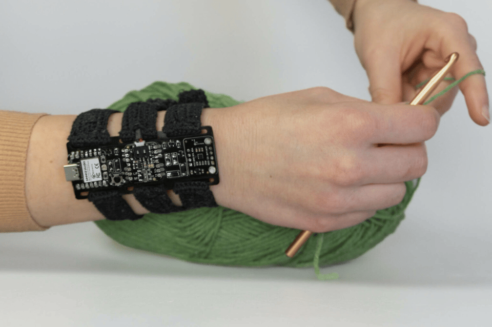 A project combining crocheting and code, and exploring the idea of turning an activity usually regarded as a handcraft, into one where humans would follow machine instructions. Using a wearable bracelet signaling the next instruction to the wearer via vibrations, this project looks into the scenario of a machine in need of human labor.