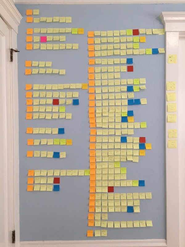 Marcin started a newsletter in 2017 and wrote detailed stories about writing chapters, rewriting chapters, buying old keyboards on eBay, and discovering particularly unusual keyboards. A post would conclude with a photo of the keyboard he was using to write the post with. At first I thought this was a goofy addition but I grew to love it. Every post felt unique. I would read knowing that the conclusion would be a photo of a whacky keyboard I had never seen before. Along with his stories about traveling to museums and interviewing retired engineers, the occasional photo of a wall covered in post-it notes tracking the book’s progress was also shared. Clearly, this was a daunting task.
