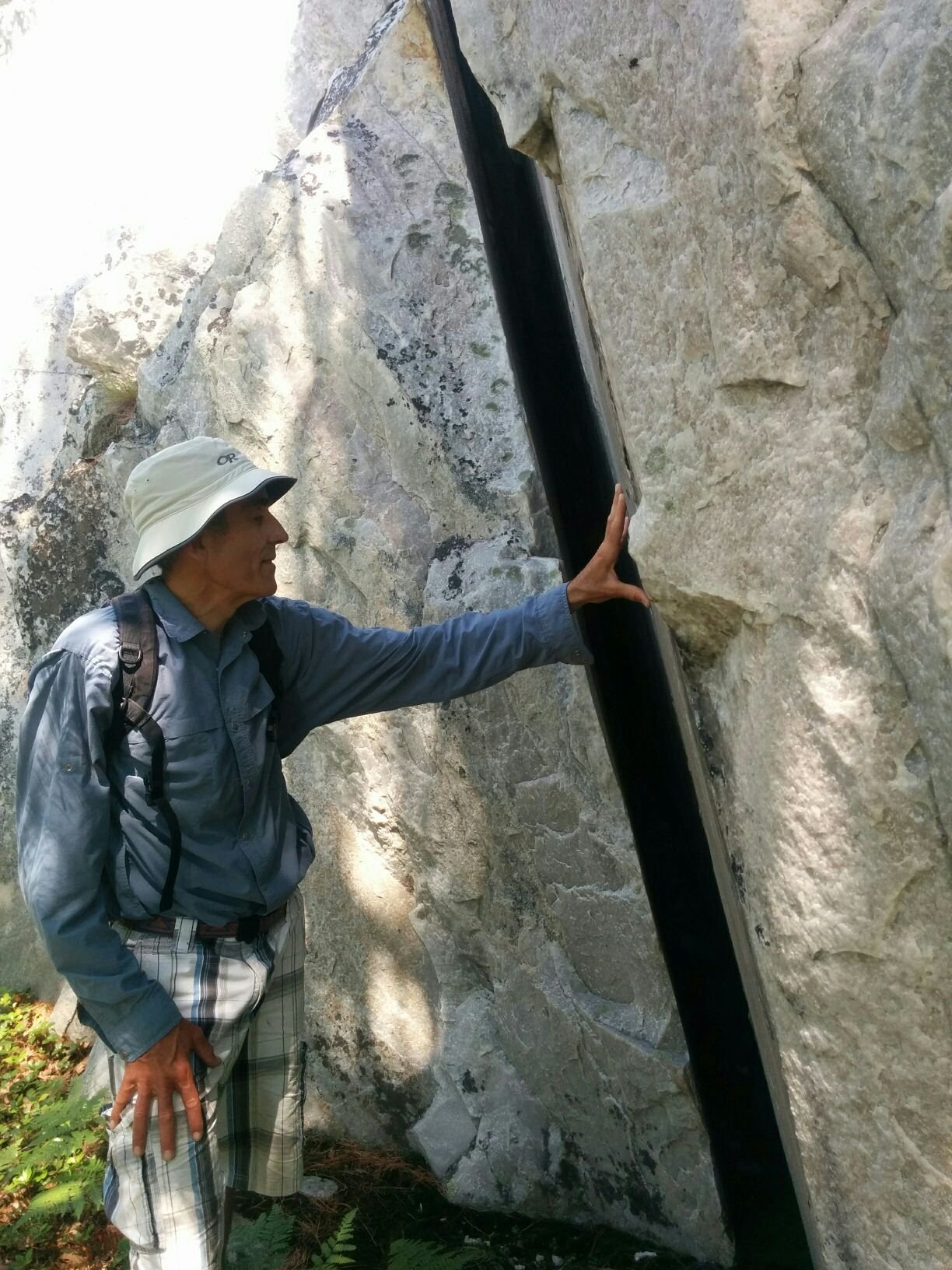 Day 11: To Frazer Bay, Blueberry Island. More rocky cliffs and pine forests. We were around the corner from an astonishing 8 power boats rafted together facing out from shore. It must have been a club outing. They look like a circle of muskox ready to intimidate anyone who approaches. Our first attempt to anchor in front of them failed so we checked the charts and decided to go around the point where we found a lovely spot and were all alone. Hiked up to a rock bluff for a view. The forest is open with exposed clean white quartzite and soft moss-covered rocks that look and feel like round green cushions.