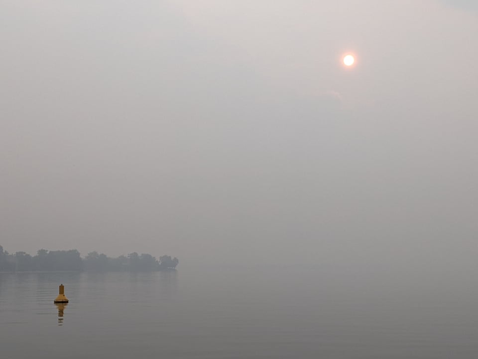 The smoke from the forest fires rolled in this morning. We are off downriver. Until next time, fair winds to all.