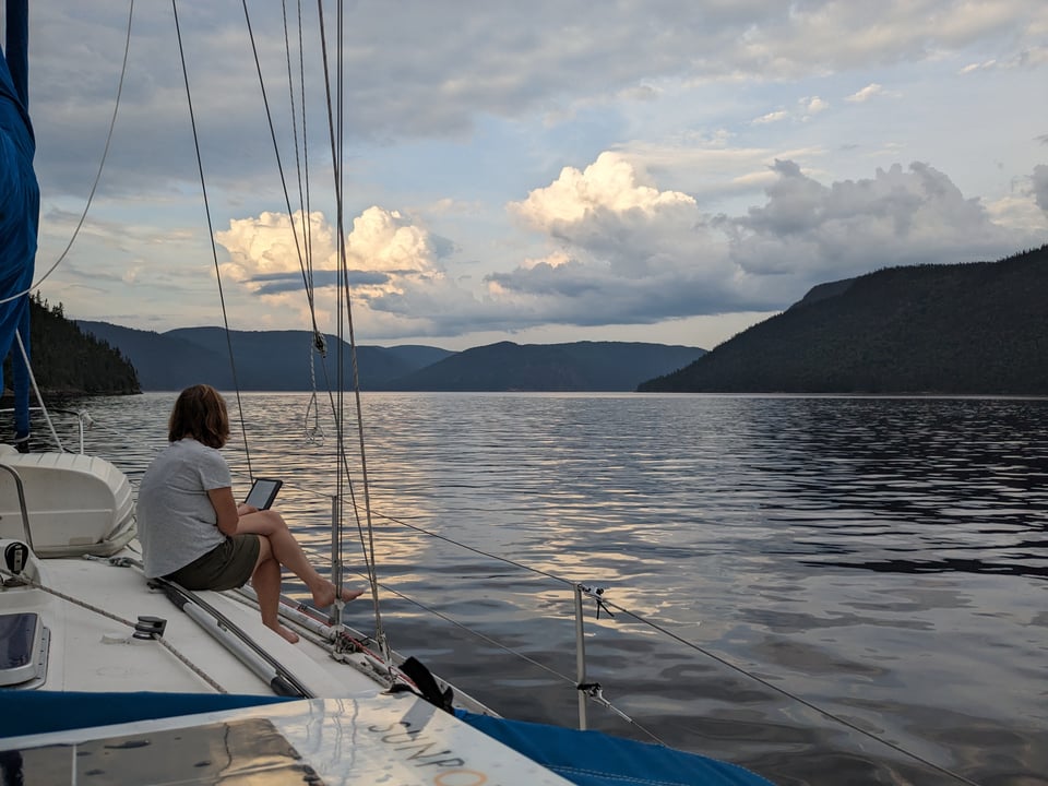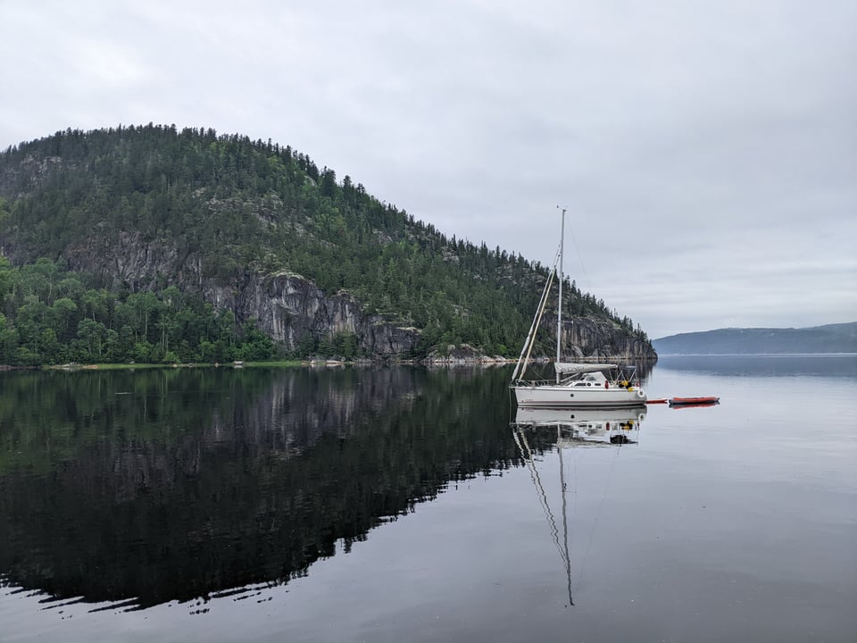 This past week we spent 4 days exploring the Saguenay Fjord and then made our turn back. It's now hard to avoid the fact we're officially on the way home, heading up-river. But there's still weeks of sailing and exploring ahead, and while in one sense we are retracing our steps, time only moves in one direction so we're always moving forward. Or to use another metaphor, you can't step (or sail) in the same river twice.