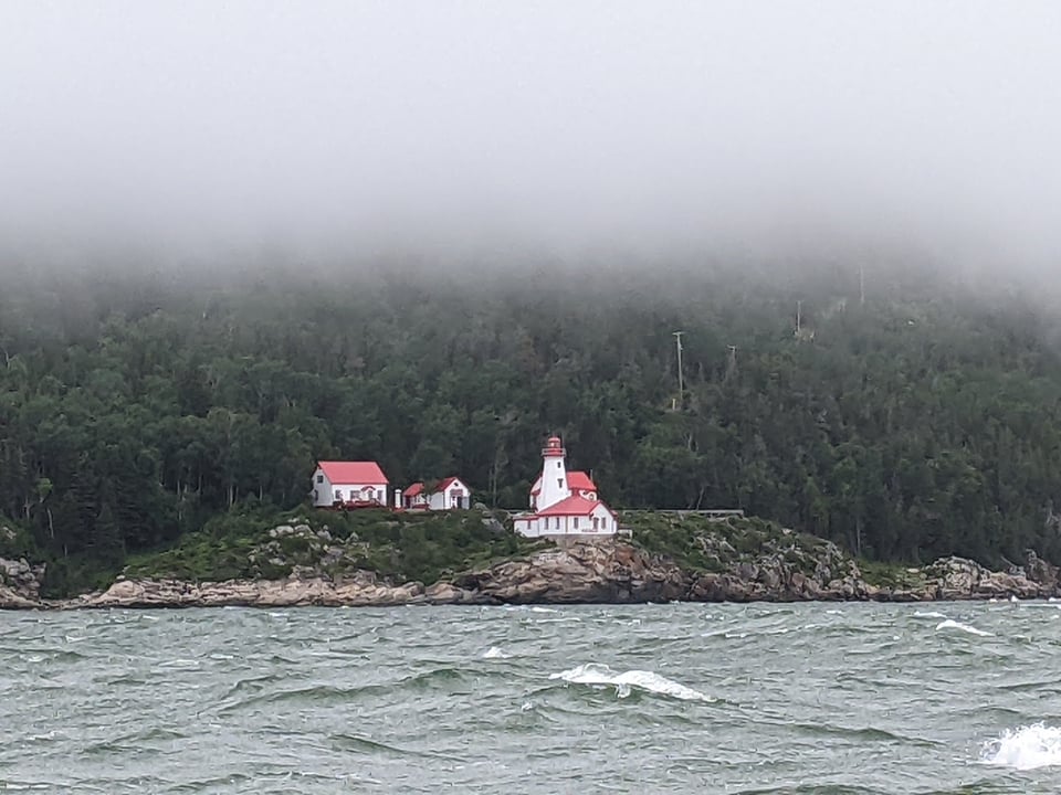 Photo: Cap-au-Saumon lighthouse. And waves, we had a rock-and-roll sail.