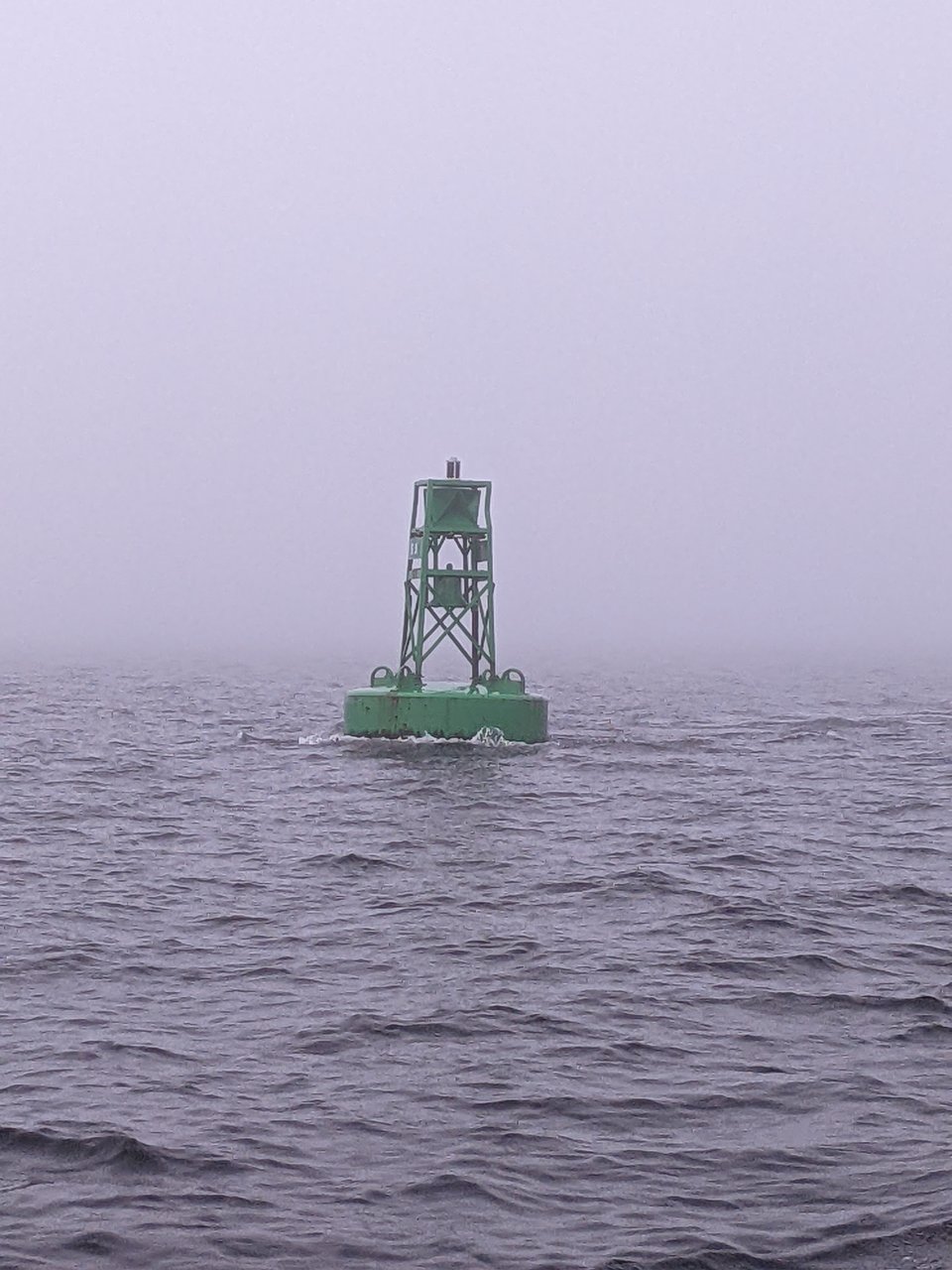 There was morning fog out of Tadoussac but it soon burned off. The navigation buoys have bells on them - how sensible!