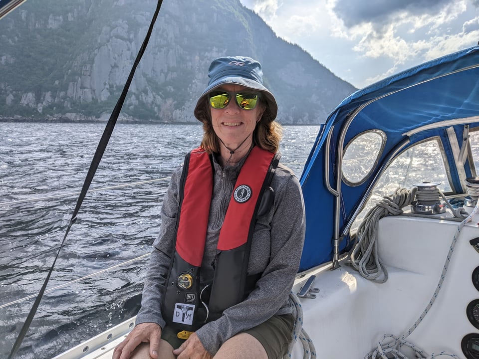 We had another exciting and good sail today. It's a good day when you turn off the motor as soon as you've left the harbor, and sail for hours (and hours) to your destination and there's no rain, and you can enjoy the scenery when it's not your turn at the helm.