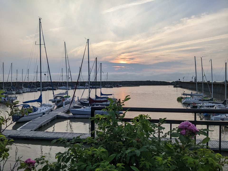 The anchorage in Anse aux Petites Îles was lovely but small and as there was already one other boat there we couldn't let out much scope. We didn't launch the dinghy in case we had to take quick action if the anchor dragged, so we enjoyed the evening from the boat.