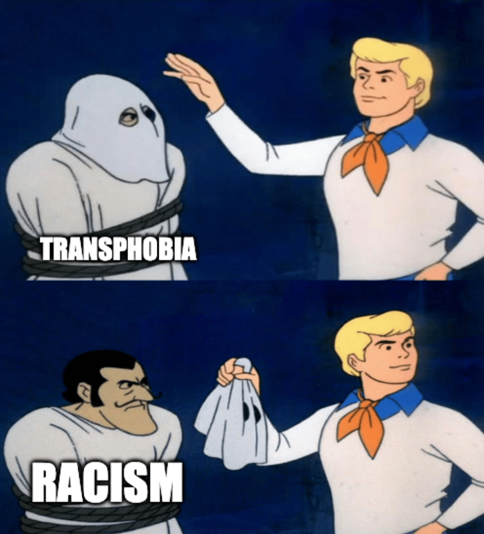 If transphobia succeeds in becoming the norm, the next logical target is women’s freedom, rigidly enforcing what “real” women are meant to be (tradwives weren’t born in a vacuum), which of course delegitimizes minority groups because they will always be deemed incapable of performing womanhood or manhood correctly. Once again:
