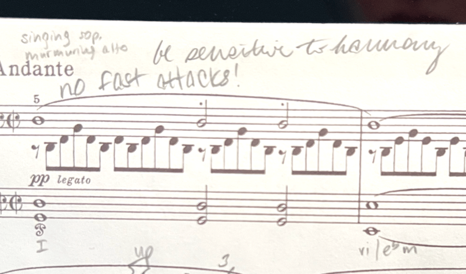 I shoehorned as much expression and movement as I could into the piece, shoving rubatos and surges and breaths anywhere I could fit them, the way you cram clutter into the crevices behind things right before a friend comes over…which caused my carefully worked inner notes to drop and become uneven again—which sent me back to square one.