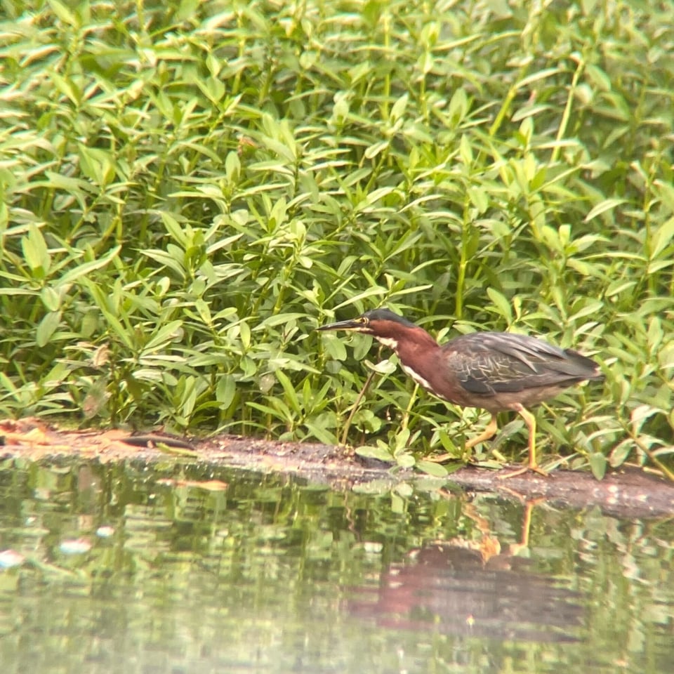 bird: Green Heron. like a lot of childless millennials, i have become increasingly aware of and delighted by birds over the past few years. my favourites are ducks and herons, so i excitedly signed up for a kayaking birdwatching trip this month. i was determined to see a green heron, a squat and funny-looking bird that looks very little like a heron until it stretches its neck out. i’d never seen one before and was rewarded for my paddling by one not only making an appearance but lingering and even catching a fish while we oohed and aahed.