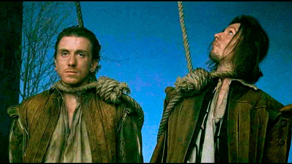 As a newly official Philosophy major, I had begun reading Wittgenstein’s Philosophical Investigations, a seductive book in which he introduces the notion of a “language game,” essentially the ways in which language is embedded in and representative of a form of life. In other words, language is not just some abstract object but is instead an essential practice or tool that we use in the ways we do because we live the lives we do — a claim somehow equally obvious and elusive. I was chewing on this sort of thing when loading 16mm reels of Rosencrantz & Gildenstern Are Dead onto the student union’s aging projector and watched a scene of a literal language game. It’s not just a (funny, clever) game played for the sake of winning; Stoppard uses the scene to smuggle in existential questions. One central running joke of the movie is that though the two leads know they’re Rosencrantz and Gildenstern, they don’t know which one they are. When Tim Roth’s character asks “What’s your name” and “Who do you think you are?”, he’s not merely making a move in the game but desperately seeking answers that his universe has not given him.