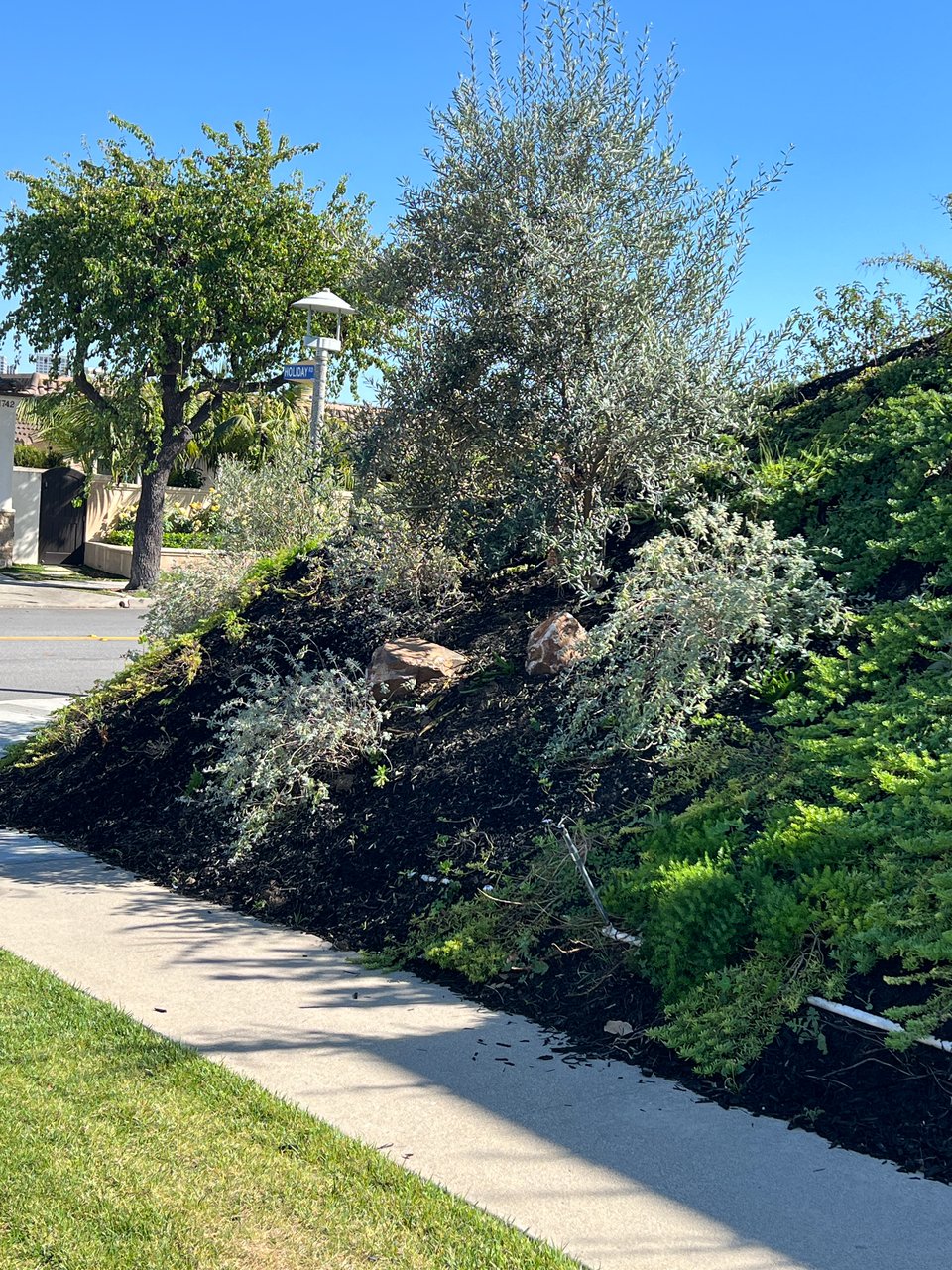 We’ve just completed re-landscaping entrances to our neighborhood of Dover Shores on the corners of Santiago and Galaxy at one end, Pescador and Santiago at the other end. In addition we have added boulders for interest on the slopes of Holiday and Galaxy. There will be a few more plantings added to the recent corner redos as well. Now just hoping for a bit of rain!