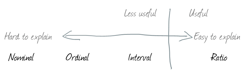 In any introductory statistics course, you'll learn that the four types of data are nominal, ordinal, interval, and ratio. You'll be assessed on this with a multiple-choice question: What data type is Celsius? Then promptly forget this information, probably for the rest of your life.