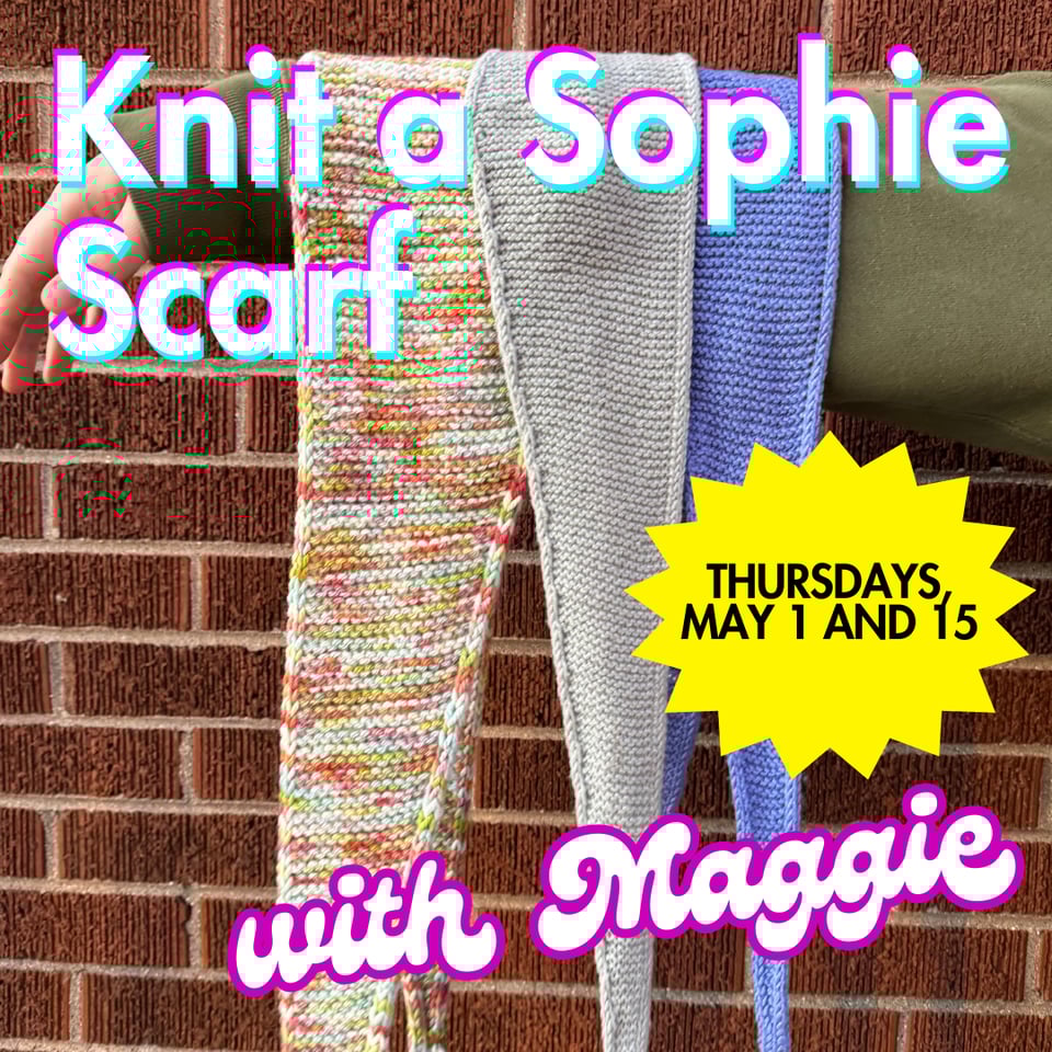 The simple but sophisticated Sophie Scarf is a permanent fixture on Ravelry’s most popular patterns chart, and it’s easy to see why - this one-skein, beginner-friendly project is a great way to showcase yarn and can be worn just about any time of the year. Don’t want to book, because Maggie’s classes always sell out fast!