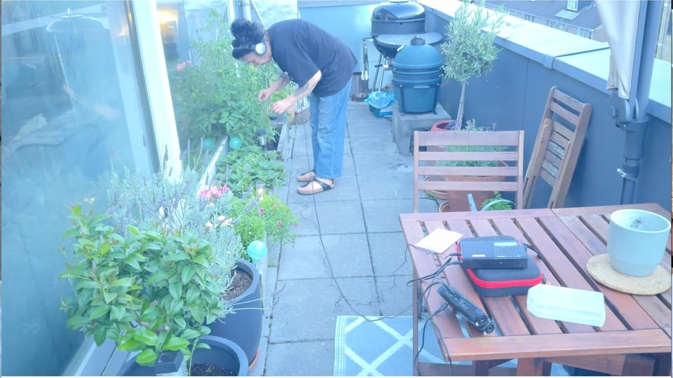 As a continuation of my research on latency-aware sonification, this summer I am staging experiments using my terrace garden as a living infrastructure lab. In this first experiment, I am not creating a field recording or documentation of a listening session; instead, I am attempting a synthetic temporality, a “collapsed” soundscape that is structurally impossible in real-time listening, but is entirely faithful to the logics of delayed signals, perhaps something that resembles a polyphonic montage: the aggregation of signals as overlapping spectral presences, each with its own geopolitical, infrastructural, and affective trace. Polyphony here is not meant as a musical metaphor, but I’d consider it an ontological description of simultaneity under infrastructural conditions. What I attempt instead, using the plants themselves as antennas and receptors is an active intervention in the temporal logics of broadcast and reception. As I said above, if shortwave itself is a medium of drift, delay, and atmospheric unpredictability, what happens when I approach broadcasts from radically different origins and times? Perhaps, the result is what I would call a chronopolitical compression event where I stage temporal collapsing as method. Here, I am interested in the radical asynchronicity and non-coincidence of global infrastructures. The “piling” of frequencies and broadcasts is not random: it is a methodological collapse of the partitioned, time-zoned, and nation-stated logics of broadcast modernity.