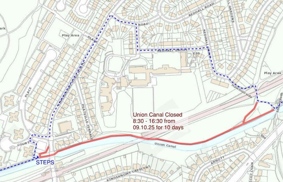 🏞️ Water of Leith Path: Closure of Pansy Walk by Balgreen until March 2026 for Scottish Water upgrades. Pedestrian diversion to be signed via Westfield Ave. However, for cyclists, the WOL Conservation Trust advise an alternate diversion via Baird Drive.