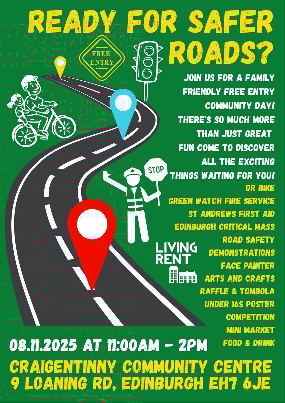 🛣️ Living Rent have organised a Lochend Road Safety community fun day this Saturday, 8th November at 📍 Craigentinny Community Centre: