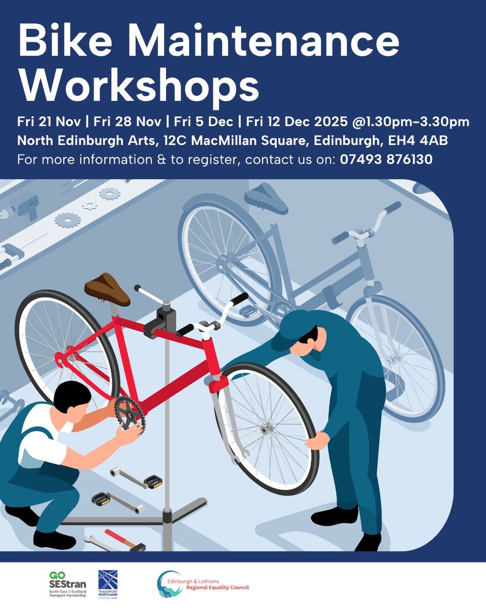 We're running free bicycle maintenance workshops for the next three Friday afternoons at NEA. If you live in North Edinburgh and would like to learn how to care for and service your bike with help from our friendly team, come along!