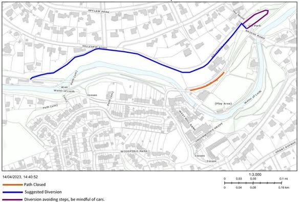 🏞️ Spylaw Park: NCR75 on Water of Leith Path closed for resurfacing until March 2026. It is not possible to dismount and walk through. Update 22nd February: A signed diversion was to be provided uphill on Gillespie Road, however no signs are in place.