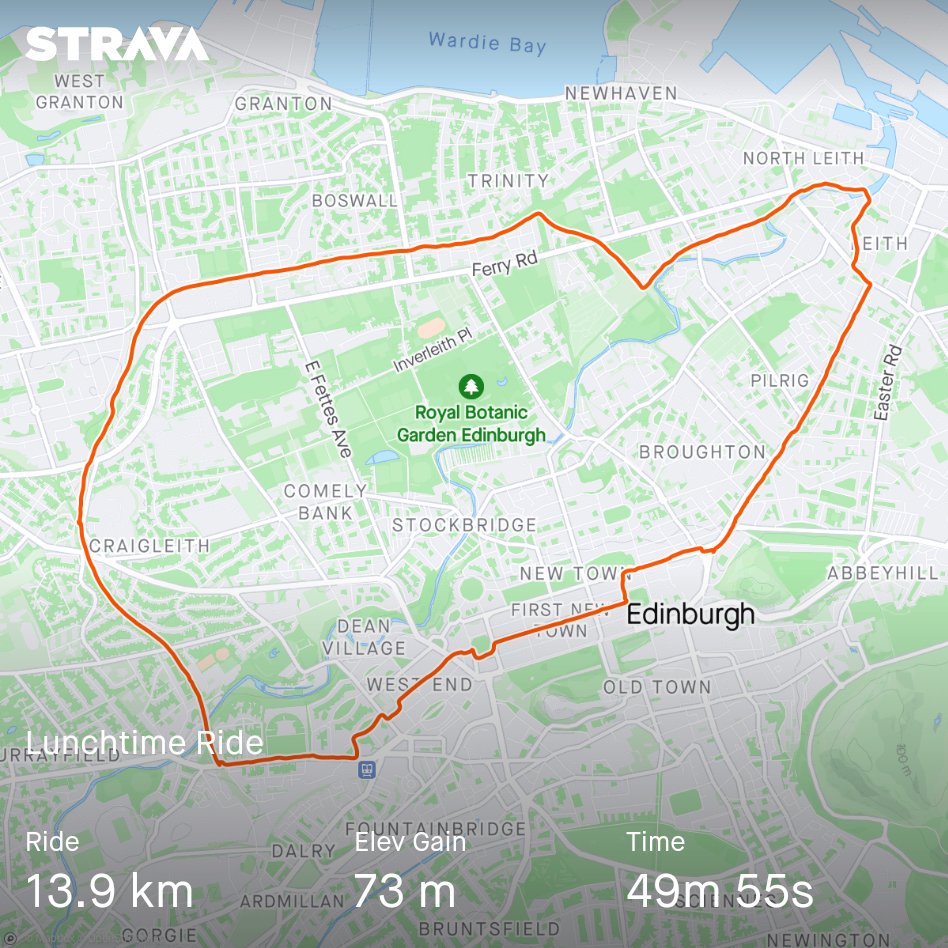 Designer and Active Travel campaigner Gordon Carmichael shared a great route map and photos this week from a nearly traffic-free loop around Edinburgh “Taking in the CCWEL, the NEPN & the Leith Walk cycle lanes” - with photos on X _(or hosted elsewhere) _. Indeed, both of the sections of this map that require road riding - George St and Foot of the Walk to the Shore - should hopefully have segregated cycleways on the horizon via various projects in the next few years.