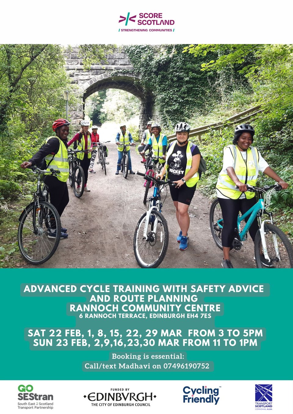 🚴🏼♀️ A new season of SCORE Scotland cycling training has arrived: ‘Advanced Cycle Training with Safety Advice and Route Planning’ at 📍 Rannoch Community Centre — 6 Rannoch Terrace, Edinburgh EH4 7ES