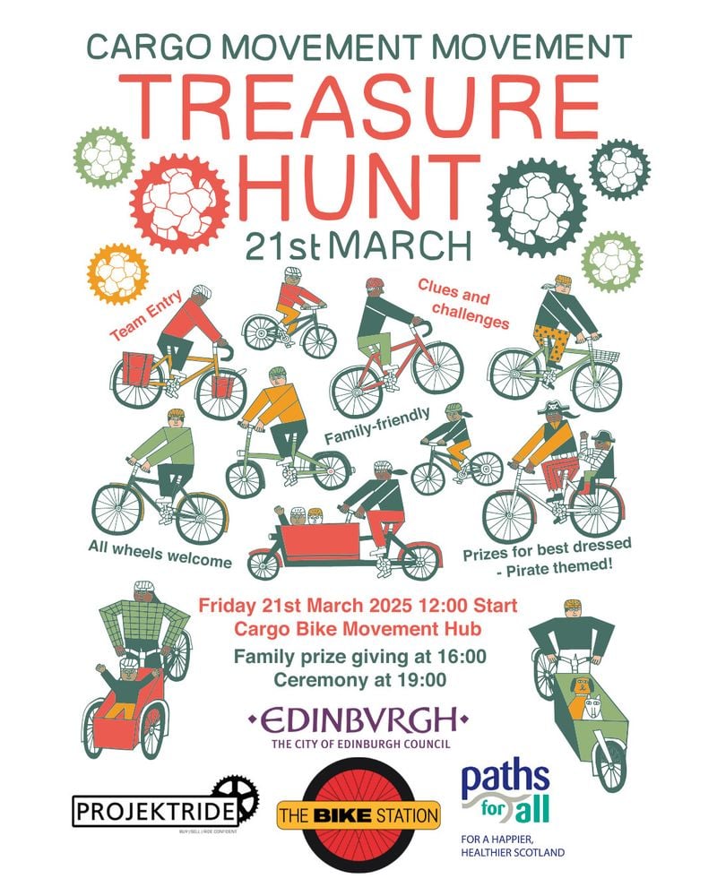 On Friday the 21st of March Cargo Bike Movement are hosting a TREASURE HUNT by bike! The event is family-friendly with a circuit around the Meadows completing challenges, and clues taking teams across Edinburgh. All wheels are welcome. Form a team or come to 📍 the Hub on the day to be paired with fellow hunters. We thank our sponsors for their support for this event and can't wait to celebrate CBM with our community. See you there! Bluesky post »