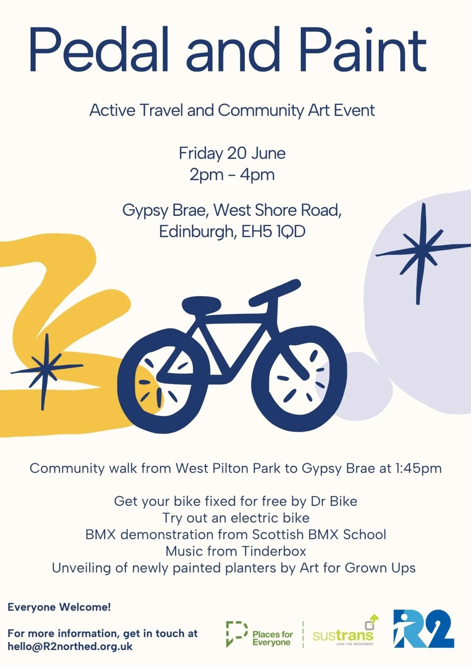 🎨 This Friday 20th, Pedal and Paint - “Active Travel and Community Art Event”, 2-4pm at 📍 Gypsy Brae, West Shore Road, featuring: