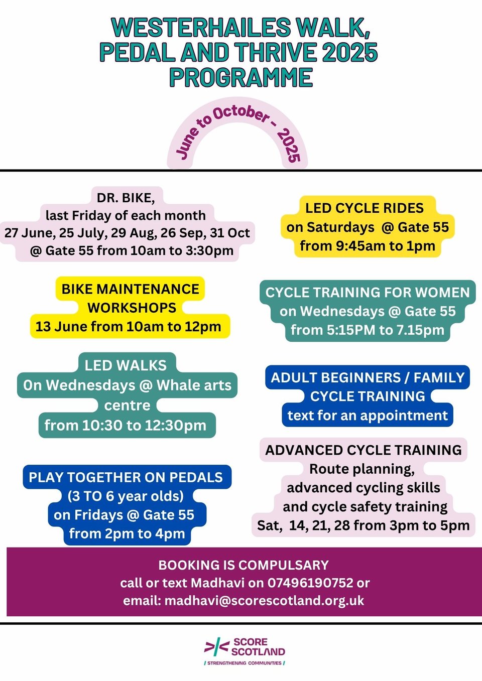 🚶🏻♀️ Busy season at ScoreScotland, with the launch of their Wester Hailes Walk, Pedal and Thrive Project, including Play on Pedals sessions for kids, adult cycle training, Dr Bike sessions and more - Full details on their Facebook Post