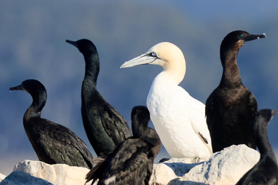 We finally pull into Half Moon Bay shortly after 6pm, more than 11 hours after we first left. Exhausted but ecstatic, we enter the harbor and spot a local celebrity—Morris the northern gannet. Northern gannets are an Atlantic species but sometime in 2012, this particular individual flew across the Arctic Sea and never went back. Named after the gannet genus Morus, he is now the only one of his kind in the Pacific. He spends a lot of time hanging out at this particular harbor and occasionally displays to the local Brandt’s cormorants, who seem unimpressed.