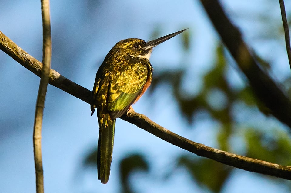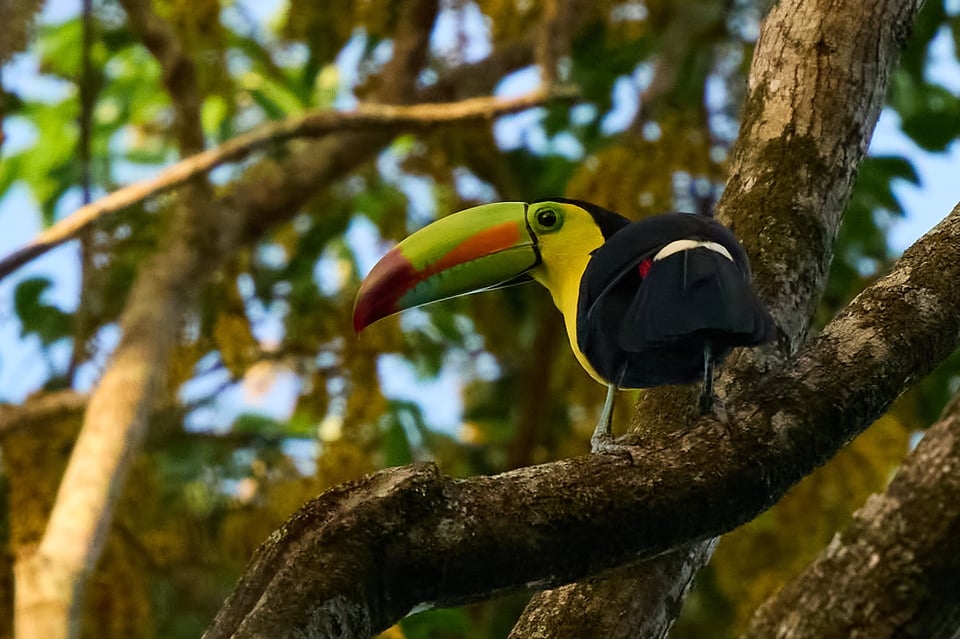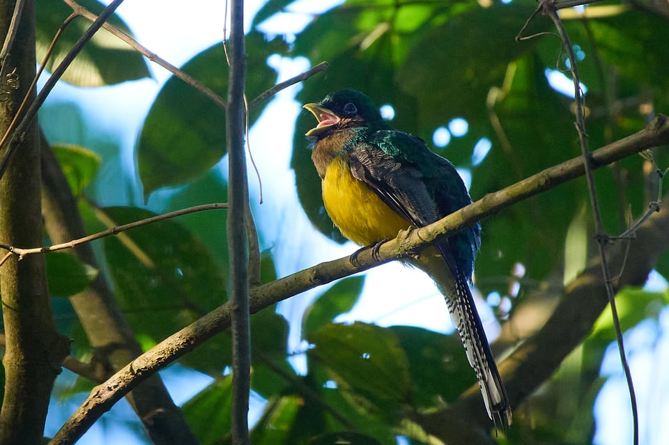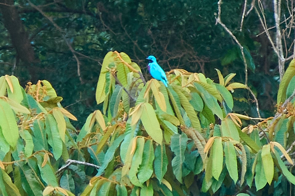 If my quads weren’t burning from holding a squat, I wouldn’t be watching male white-collared manakins flitting from branch to branch, dancing for a spectating female in their foliage-framed arena.