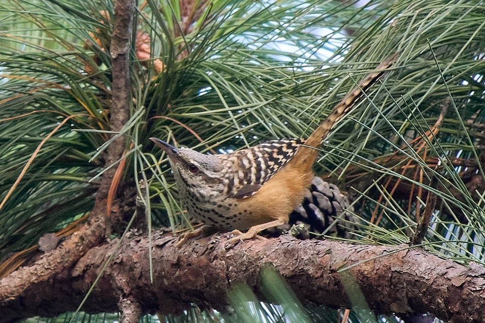 On the last of our ten days in Honduras, our frenetic group of birders is watching an equally frenetic flock of warblers when one of us, Karen Carpenter, spots an owl. It’s a ferruginous pygmy-owl. It’s… eating something!