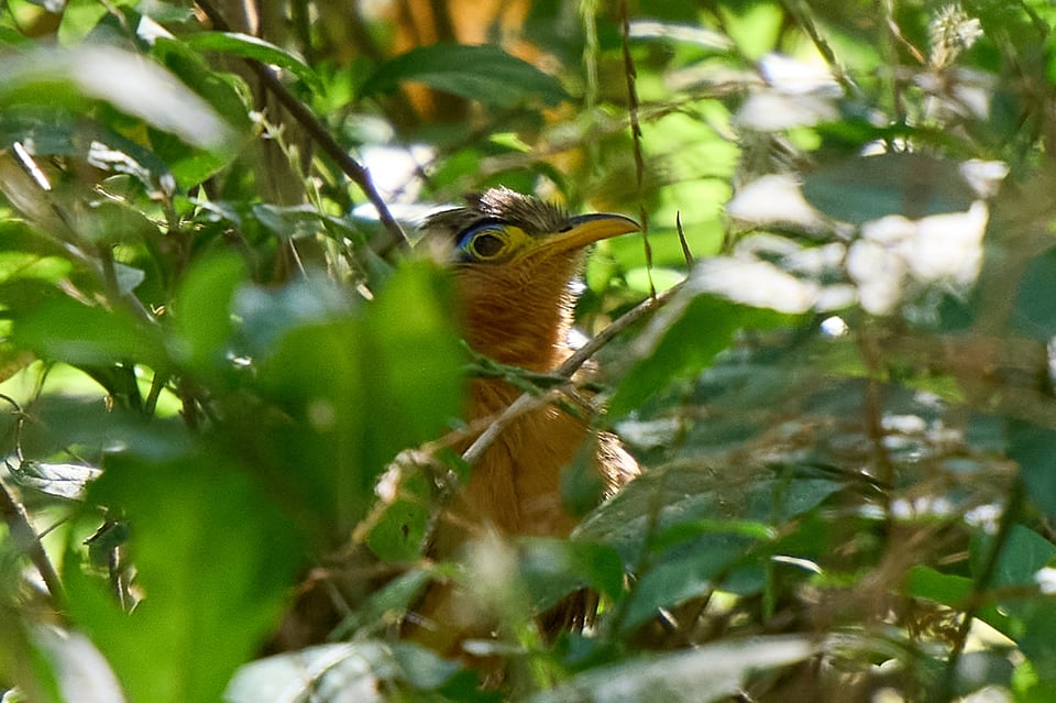 Birding is always about alignment—about going in the right place, being at the right time, and looking (or listening) in the right direction, so that your existence briefly connects with another animal’s. When alignment is harder to achieve, the resulting sense of connection feels that much more profound. If I wasn’t standing just right here, I wouldn’t be staring into the blue-and-gold eye of a lesser ground-cuckoo, paused motionlessly behind a thicket.
