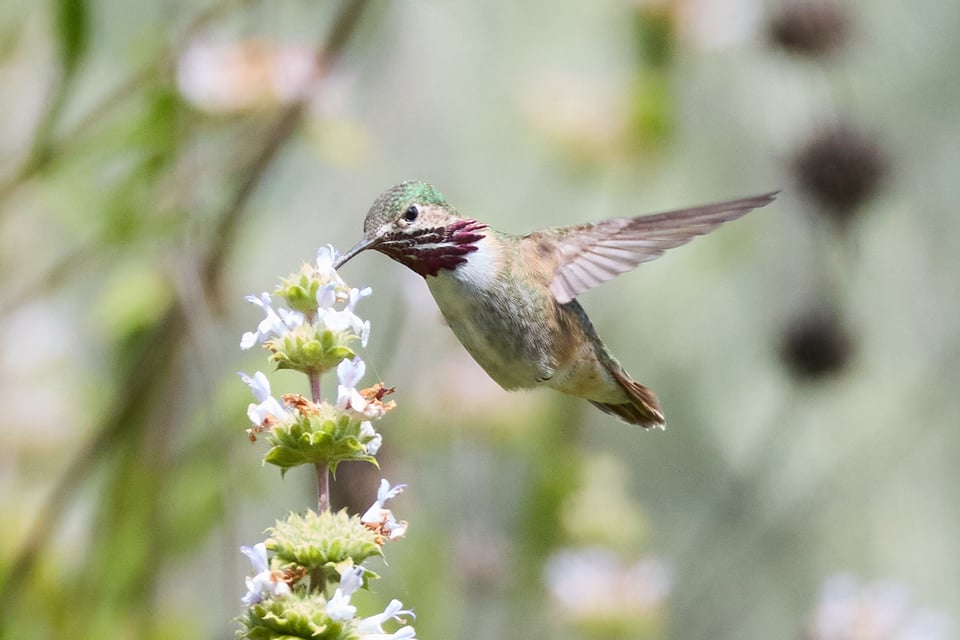 The birds tend to arrive in a predictable rhythm. I expected Wilson’s warblers—yellow with black caps—to show up at the end of March, and they did. I figured that if I went out today, the blue grosbeaks—rich cobalt with rusty wingbars—would be back, and they were. I knew that calliope hummingbirds—tiny with streaky magenta throats—pass through specifically in the third week of April, and that if I went to places with flowering black sage, I’d find some. I did, and I did. I knew that the local canyon wrens—rusty red, white throat, long bill—would start singing, and if I went to the park where they’re sometimes seen, find the largest rockface, and whistle an imitation of their song, which sounds like a wren that’s running out of batteries, I might tempt one to pop out. I did, and it did.