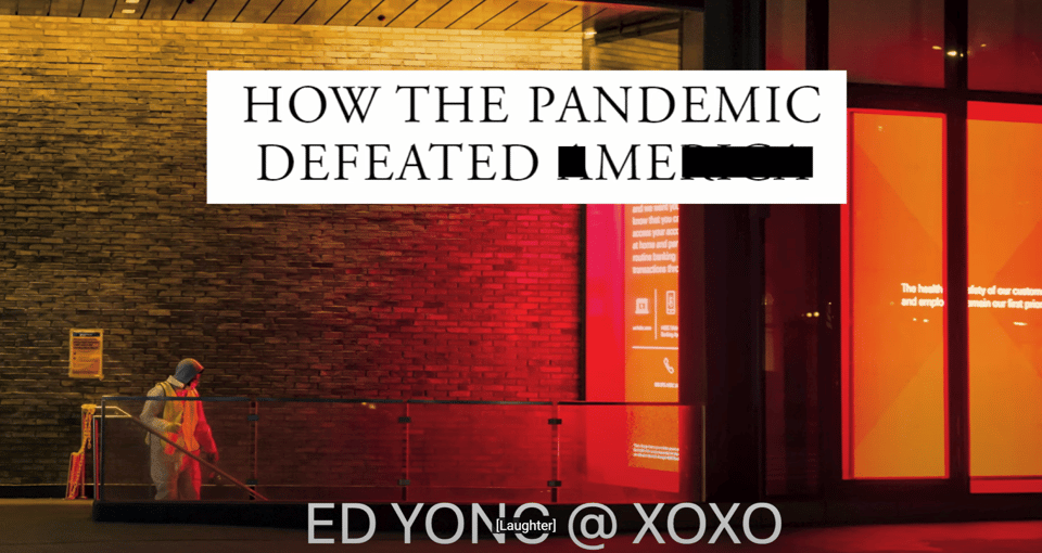 In the past, when I’ve given talks about the pandemic, they’ve focused on how Covid revealed the vulnerabilities in our society, and why we failed to adequately respond to it. But in August, I gave a very different pandemic talk at XOXO—a festival for “independent artists/creators who live and work online.” Co-founder Andy Baio told me that speakers tend to “cover the dark, difficult challenges that come with [online life],” and so that’s what I talked about—what it was like to report on the pandemic, to live through it, to be broken by it, to recover from it.