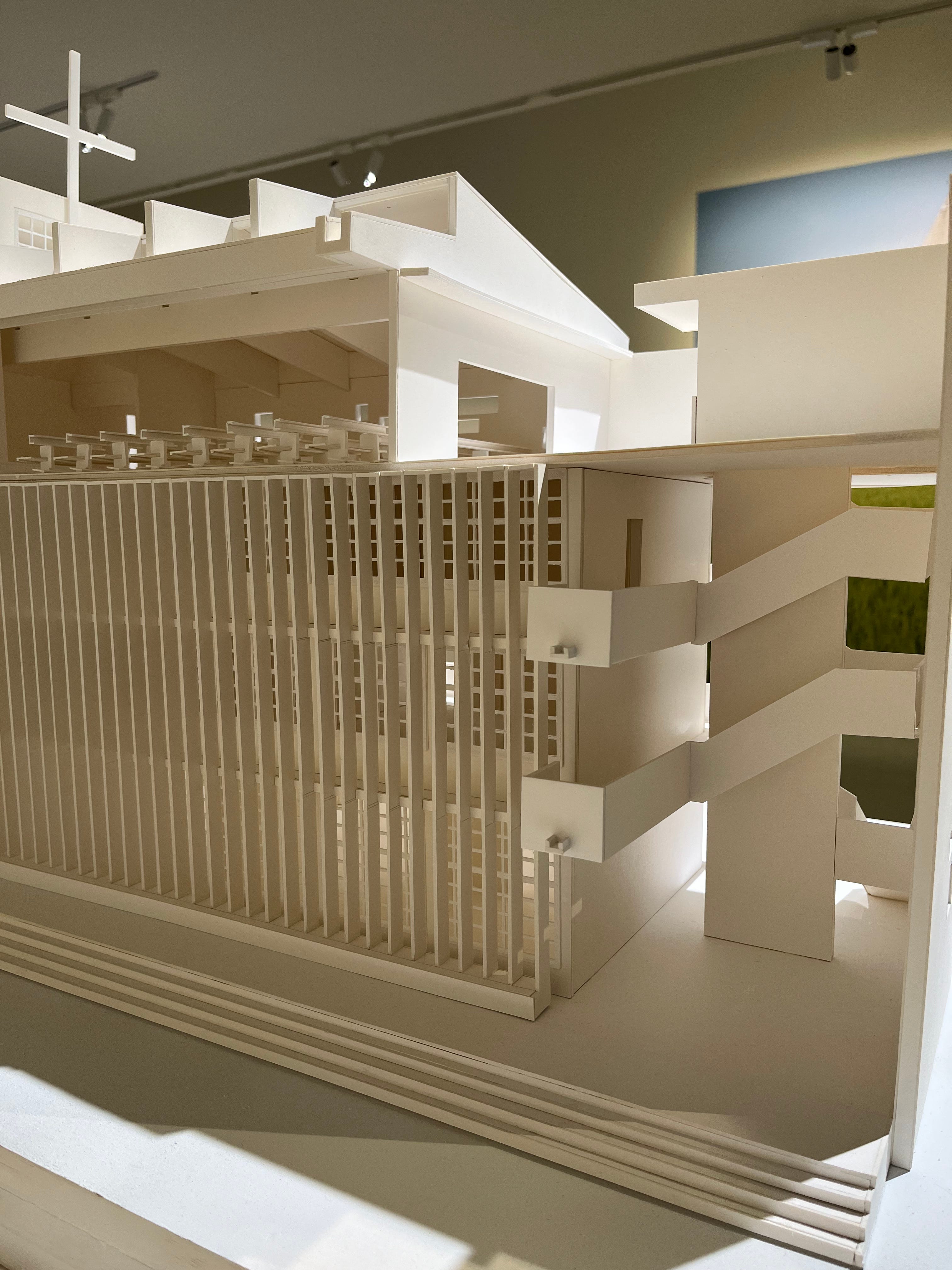 摩登生活:臺灣建築1949–1983:北美館展覽,展期到 6/30。從國民黨政府敗退來台開始導入中國元素(臺灣銀行高雄分行)、美援(成大未來館)、中國復古(臺北當代工藝設計分館),一直到楊德昌《青梅竹馬》的 1980 年代。展出的模型眾多,認真看的話,一個下午走不完。