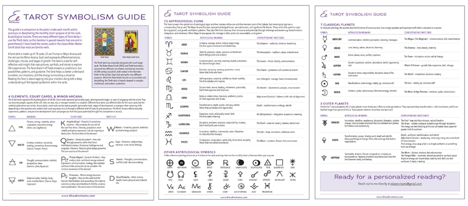 Subscribe to the Eliza Enchants newsletter for monthly readings in your inbox and receive my Tarot Symbolism Guide for free…