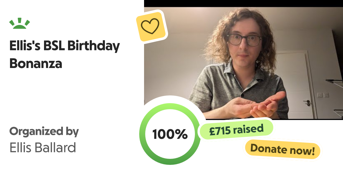 Hello, I'm Ellis. I'm keen to continue my education in British Sign Language but I need som… Ellis Ballard needs your support for Ellis's BSL Birthday Bonanza