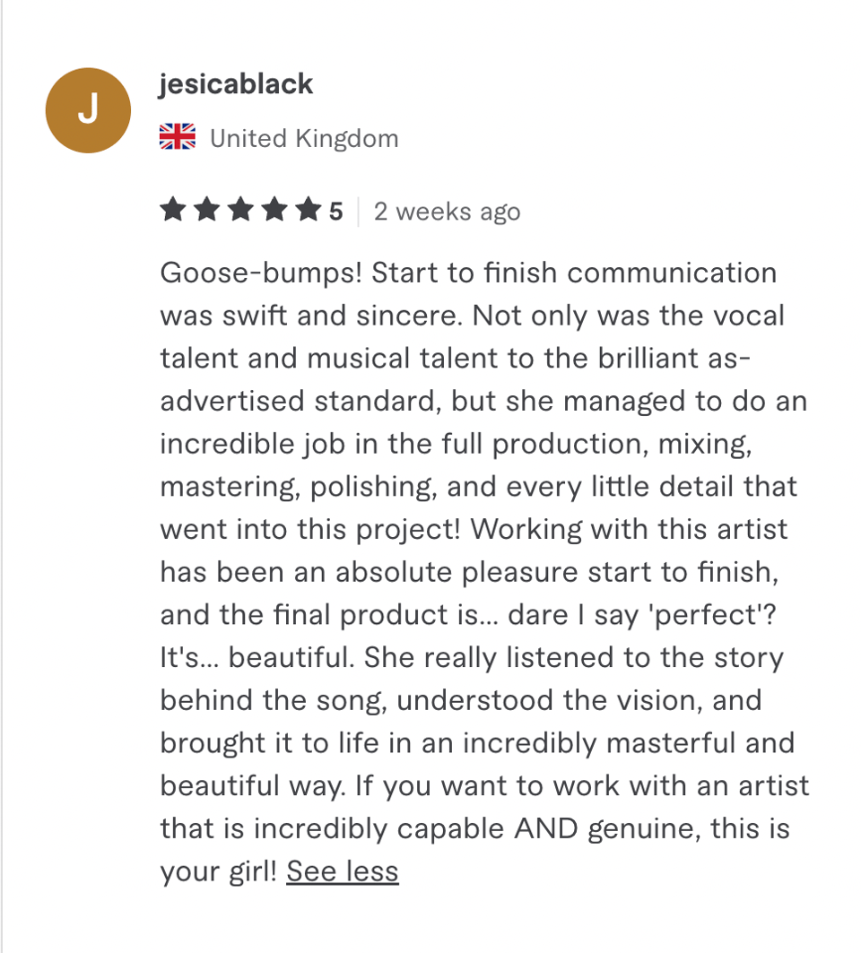 Recently I completed my 900th order on Fiverr! The magnitude of that number is something that I don't quite know how to comprehend- my voice and my writing and my music exist in countless different forms all over the world. What a gift!