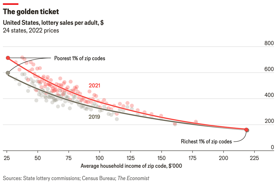 - 📝 The economics of American lotteries: Poorer citizens spend a staggering amount on tickets. (The Economist)