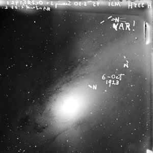 Greetings, friends. On January 1, 1925, exactly a century ago yesterday, Edwin Hubble addressed the annual meeting of the American Astronomical Society to confirm the discovery of Cepheid variable stars in the Great Nebula in Andromeda. This announcement decisively demonstrated the existence of other galaxies beyond the Milky Way, and paved the way for our modern understanding of cosmology.