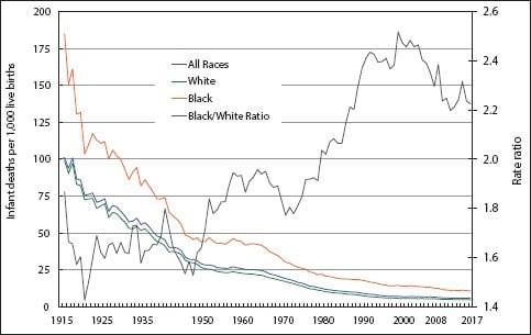 Singh GK, Yu SM. “Infant Mortality in the United States, 1915-2017: Large Social Inequalities have Persisted for Over a Century.” International Journal of MCH and AIDS 2019.