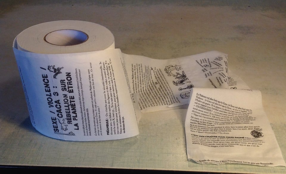 On fait souvent des blagues entre nous sur des jeux qui seraient imprimés sur des T-shirts, des crêpes, des écocups… C’est devenu un jeu que d’imaginer le format le plus improbable, et ce qu’on pourrait mettre dessus, et comment. Et ben voilà, je l’ai fait, et je suis bien content d’être désormais en mesure de proposer un jeu (trash comme il se doit) sur du papier toilette. Au-delà de la blague, ça m’a permis aussi de toucher du doigt le format rouleau, et si je suis très très loin de la classe absolue d’un Ours liquide, ça me donne quand même bien envie de continuer à expérimenter avec cette forme-là ! Mais de façon moins provocatrice, promis.