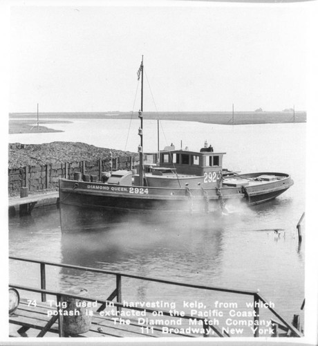 Another detail caught my attention. The archivists seem to have believed that the landscapes represented in this album were on the "San Pablo Bay" in northern California (San Pablo Bay is just another water body that connects with the estuary of the San Francisco Bay). My understanding all along was that these facilities and kelp-harvesting ships were located in Southern California (my understanding is that there is no kelp in the Bay, besides). A great source about this operation is Peter Neushul's "Seaweed for War" (1989).
