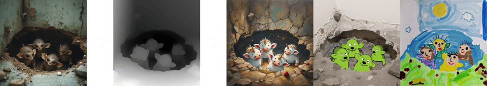 Purpose: Guide image transformations using depth maps, preserving structural details while enabling creative edits.