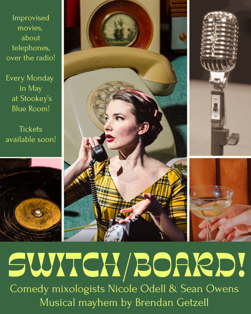 Returning to the Blue Room stage for all four Mondays in May, the delightfully well-received comedy trio of Nicole Odell, Sean Owens, and Brendan Getzell return with another dizzying foray into SWITCH/BOARD! Yes, four more improvised screenplays based on the telephone, performed as live radio theatre.