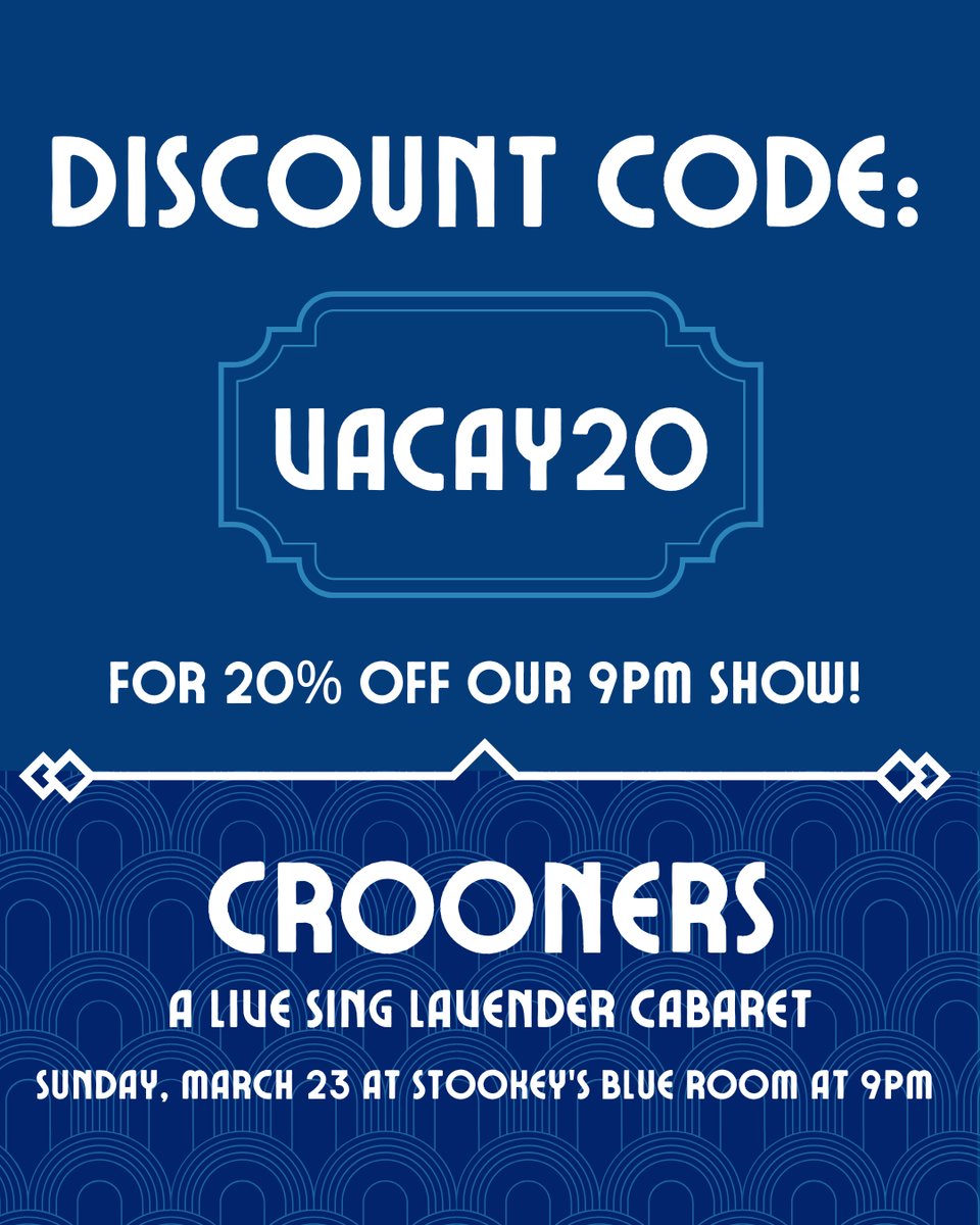 This week’s special guest stars are Bebe Sweetbriar and Another Bard, and they’re sure to make globetrotting look easy! So pack a steamer trunk or a rucksack, and join us on this musical expedition over land, sky and sea as “CROONERS Takes You Places!” As always, we like to give our subscribers first crack at our discount code– good for any seat at the 9pm show! So use the secret password “VACAY20”, and we’ll see you on the Lido Deck for shuffleboard!