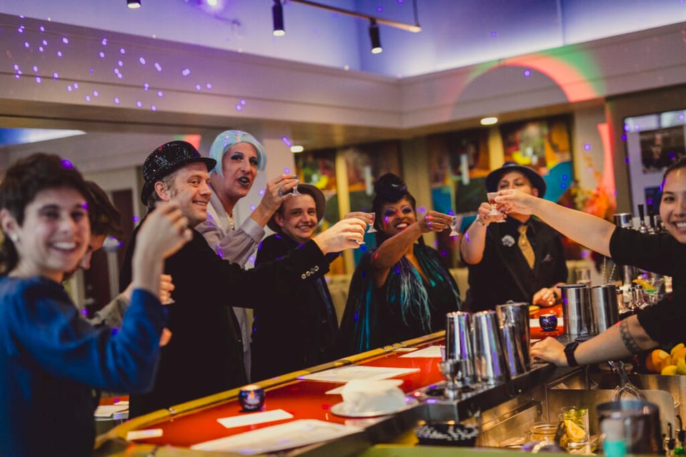 As our regulars know, the Stookey’s “Moderne” aesthetic so perfectly evokes the ocean liners and luxury railcars of the 30’s, it’s only natural that we’d arrive at this theme eventually! Paired with great hospitality, incredible cocktails, and elegant evening wear– well, you’d almost swear you were crossing the channel with Ingrid Bergman and Cary Grant, or maybe throwing a late night mixer in the upper berth with those lovely girls, Daphne and Josephine!*