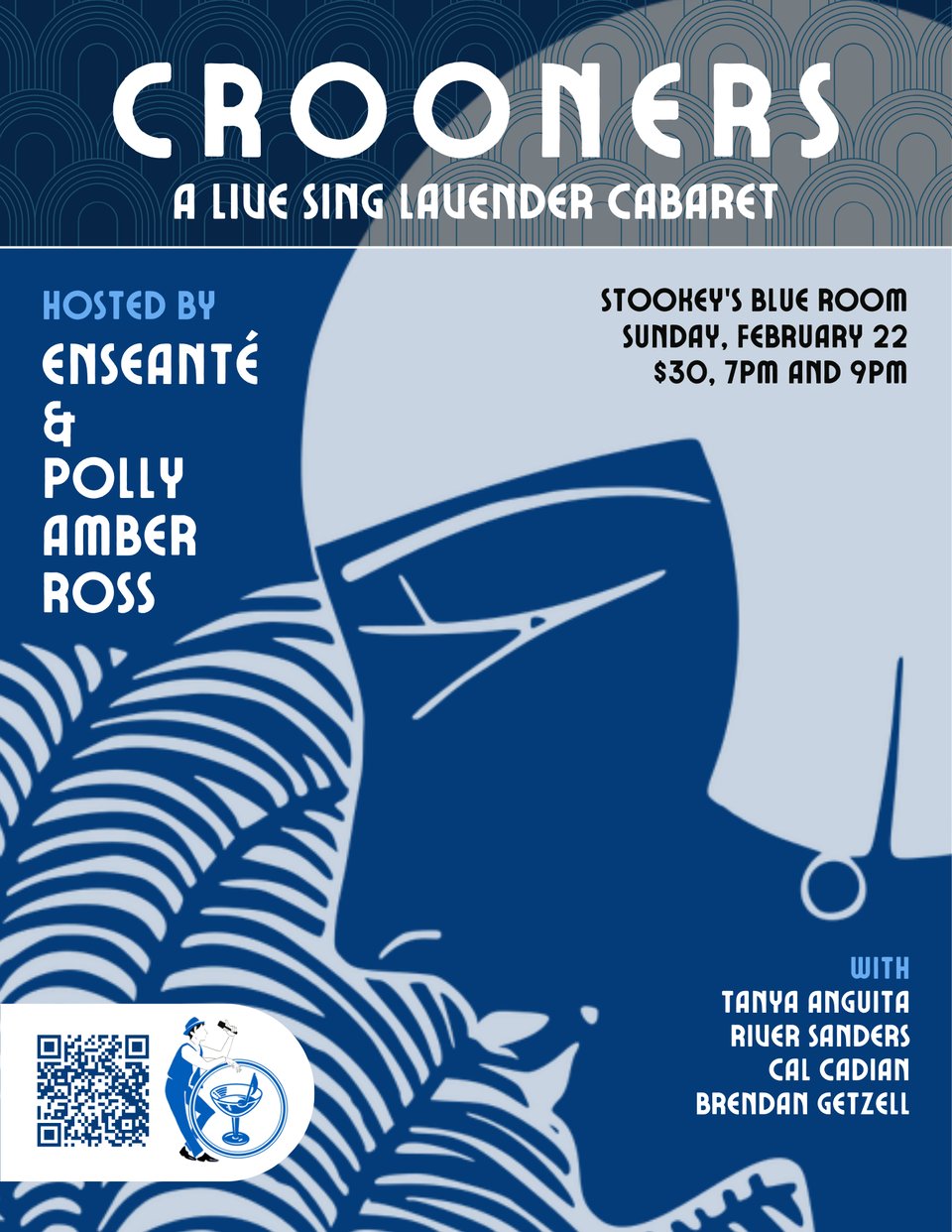 Get ready for a night of vamps vamping, and harmonizing harlots, as CROONERS experiences its first Bad Girl Takeover, with hosts Polly Amber Ross and EnSeanTé! Chester’s whirlwind touring schedule means he’s unable to join us on Sunday February 22nd– and while the boss is away, the femmes will play! Special guests Tanya Anguita, River Sanders, and Cal Cadian join us to juice the fruit on this sassy, seductive evening of song.