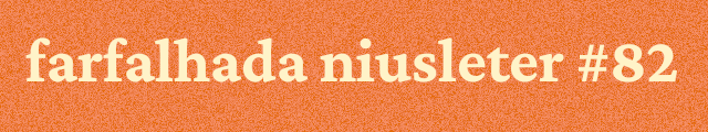 A farfalhada niusleter é o meio mais livre e satisfatório por onde espalho, na internet, meus escritos fragmentários de muitos temas e tons: dos arranhões filosóficos e políticos baseados, quase sempre, no debate sobre civilização e ecologia, aos meus haicais, haibuns e zuihitsus da vida cotidiana. Alguns dos textos que compartilho aqui estão presentes no meu último livro, um miscelânea fragmentária chamada Retalhos. Atrair inscritos é sempre uma alegria, mas dá trabalho. Se você acompanha e aprecia esta niusleter, e conhece gente que também faria o mesmo, compartilhe, indique.